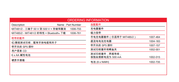 MIT481/2 50 V、100 V、250 V、500 V* + 存儲