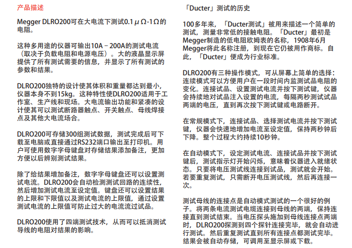 Megger DLRO200在大電流下測量0.1 μΩ至1 Ω的電阻。