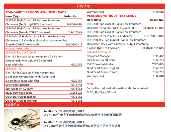 提供完整的16英尺(5米)測試導(dǎo)線和下載軟件