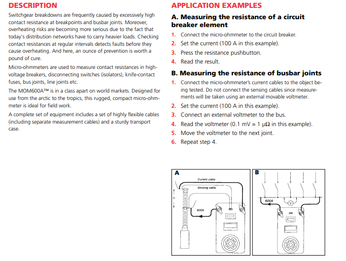 由于今天的配電網(wǎng)絡(luò)需要進(jìn)行更重的負(fù)載,過熱的危險(xiǎn)正變得越來越嚴(yán)重。定期進(jìn)行接觸電阻檢測可在造成過熱之前探測故障。