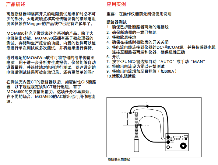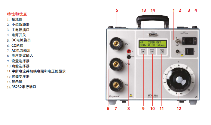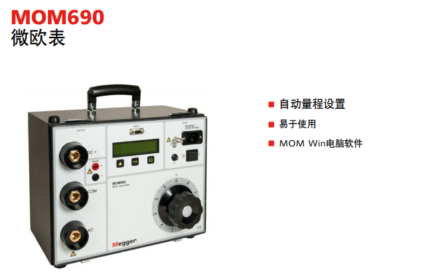 MOM690?補(bǔ)充了微姆表系列。除了高電流容量,MOM690?也擁有基于微處理器測量的特性,存儲和報(bào)告。內(nèi)置的軟件讓用戶可以進(jìn)行個別的測試或整個系列的測試,并存儲結(jié)果。