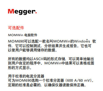 有了可選的MOM Win?軟件用戶也可以導(dǎo)出測試結(jié)果至電腦作進(jìn)一步分析和報(bào)告。量程自動設(shè)置,連續(xù)測量電阻,在一個預(yù)設(shè)的測試電流可自動捕捉測試結(jié)果。