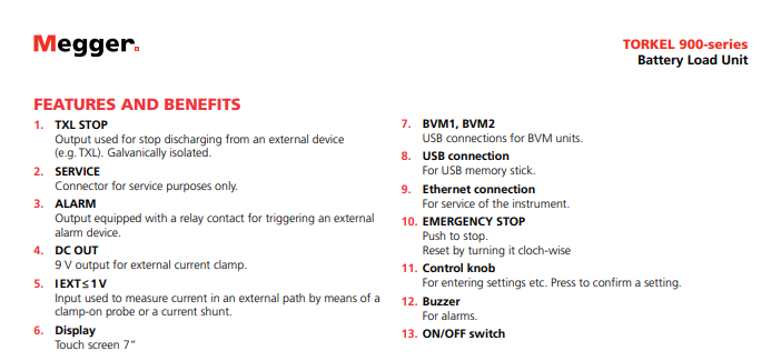 在 Megger 值得信賴的電池放電測試系統(tǒng)系列中,TORKEL 900 是第四代產(chǎn)品。放電測試是全面了解電池容量的唯一一種測試方法,因此,它是電池維護(hù)程序至關(guān)重要的一部分。