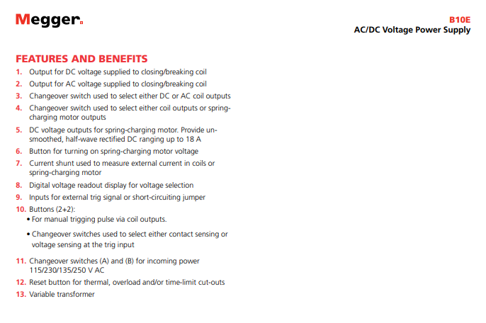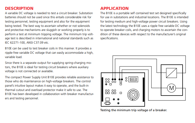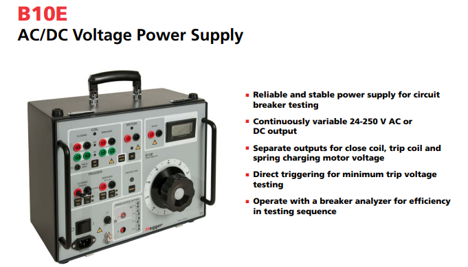 B10E直流電壓源就可以用這種方法測試斷路器線圈,它提供一個無紋波的多變直流電壓,可以容易地滿足重且多變負荷需求。