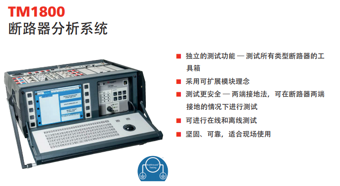 TM1800是斷路器維護的儀器平臺是基于超過20年制造超過4000部斷路器分析儀的經驗而誕生的產品;模塊化的設計讓TM1800可通過設置測量今天電力世界所有不同的斷路器。