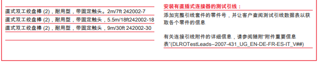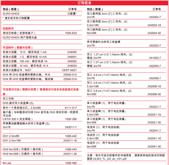 DLRO10HDX的額定等級為CAT III 300 V,前提是該儀器安裝了可選的端子蓋。
