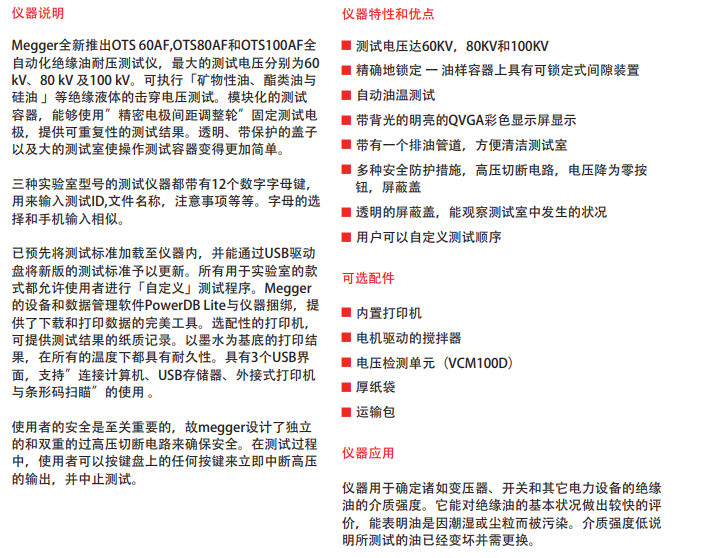 - Megger絕緣油測試儀
