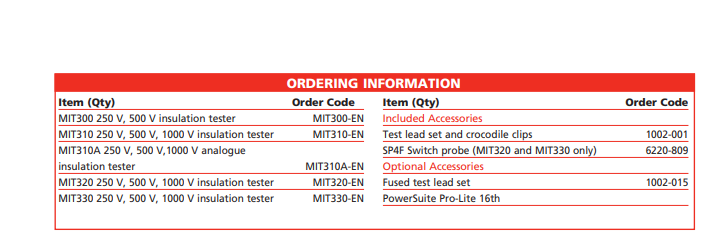 所有測(cè)試儀都帶有完整的校準(zhǔn)證書。對(duì)于偏好模擬設(shè)備的用戶,Megger提供了MIT310A,它的功能類似MIT310,但其傳統(tǒng)的移動(dòng)式線圈取代了數(shù)字顯示。