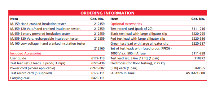其中四個型號擁有模擬顯示,具有四個可選擇的試驗電壓100、250、500和1000 V dc,測量絕緣電阻高達2000 M-Ohms,以及電阻范圍至5000 ohms。其他的型號擁有四個測試電壓,為50、100、250及500 V dc,測量絕緣電阻高達1000 M-Ohms。