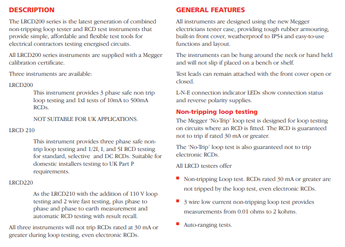 Megger的LRCD200系列是最新一代的儀器,結(jié)合了不跳閘回路測(cè)試和RCD測(cè)試,為電氣承包商測(cè)試帶電線路提供了簡(jiǎn)單、低成本和靈活的測(cè)試工具。
