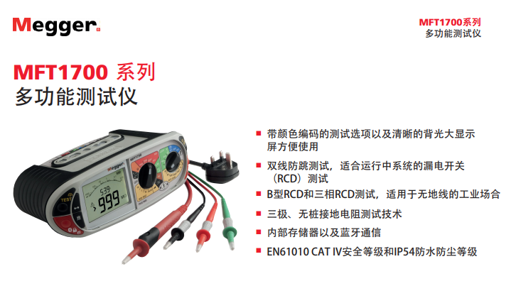 MFT1720 - 最流行的第17版規(guī)程測試儀,提供MFT1710的所有功能,外加自動RCD測試、相旋轉(zhuǎn)測試、可編程3相RCD測試以及和可選的夾鉗配合進(jìn)行電流測試。