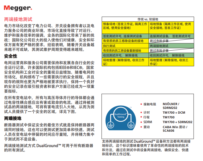 擁有專利的雙接地技術(shù)通過(guò)在測(cè)量時(shí)通過(guò)將斷路器兩端接地,使測(cè)試變得更安全、更節(jié)省時(shí)間。