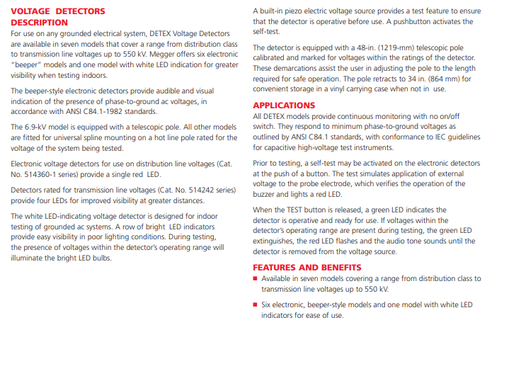 電壓探測(cè)器Megger514360-7產(chǎn)品介紹