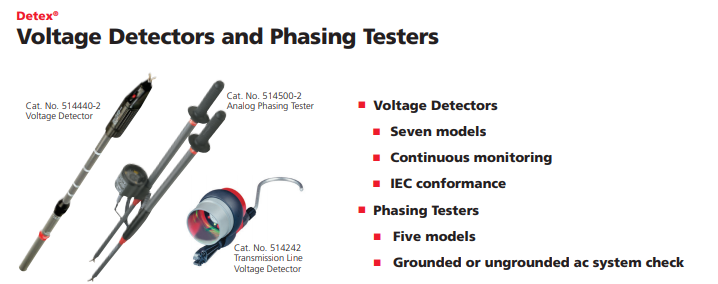 電子電壓探測(cè)器,用于配電線電壓(分類編號(hào) 514360 系列),提供一個(gè)紅色 LED。探測(cè)器額定電壓為傳輸線電壓(分類編號(hào) 514242 系列),提供四個(gè) LED,以改善較遠(yuǎn)距離的能見(jiàn)度。LED 指示電壓探測(cè)器,專為室內(nèi)檢測(cè)接地交流系統(tǒng)設(shè)計(jì)。明亮的LED 指示器能夠在較差的照明條件下提供良好的能見(jiàn)度。