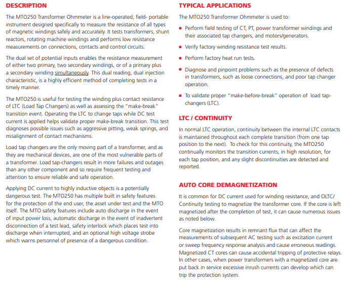 變壓器直流電阻測試儀MTO250產(chǎn)品介紹