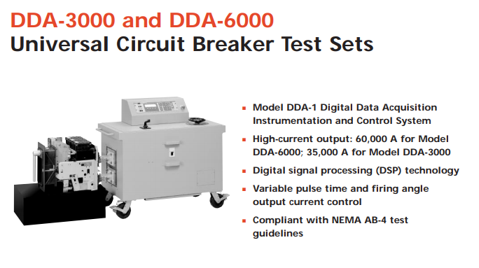 這款通用測(cè)試儀可用于測(cè)試幾乎所有低壓塑殼和金屬殼直動(dòng)式交流斷路器,包括通用電氣、西屋電氣、Federal Pacific、Square D, Gould、ABB、ITE、西門子及其他制造商的產(chǎn)品。DDA-3000 型號(hào)適用于測(cè)試最高額定電流為 3000 A 的斷路器。DDA-6000 型號(hào)適用于測(cè)試最高額定電流為 6000 A 的斷路器。Megger 的這兩款斷路器測(cè)試儀堅(jiān)固耐用且可靠性高,使用多年都不會(huì)出現(xiàn)問題。它們還可用于其他大電流應(yīng)用,例如,檢驗(yàn)電流互感器的變比,進(jìn)行發(fā)熱試驗(yàn),或測(cè)試高壓斷路器及相關(guān)的保護(hù)繼電器。DDA-3000 和 DDA-6000 這兩個(gè)型號(hào)具有相同的功能、儀器和工作特性。這兩者之間的唯一規(guī)格變化是它們的尺寸、重量和最大輸出載流量。