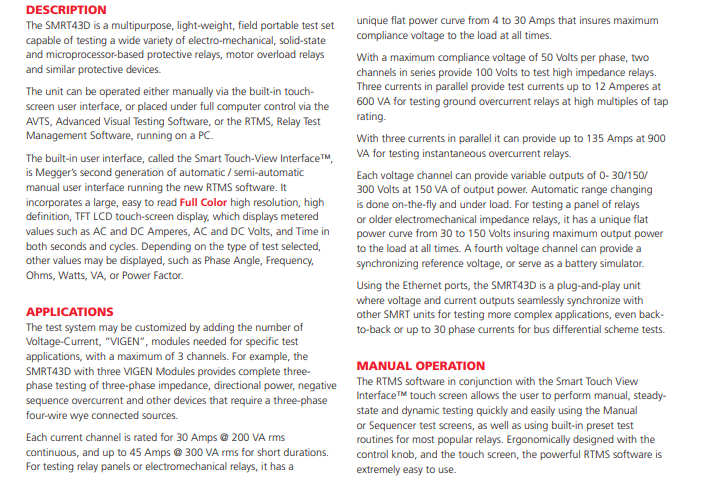 SMRT43D 是一款多功能、輕型便攜式現(xiàn)場設備,能夠測試各種電磁繼電器、固態(tài)繼電器和基于微處理器的繼電器、電機過載繼電器和其他類似的保護設備。