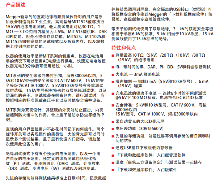 MIT1025有堅固的外殼,提供了終極的保護,箱蓋是可移動的,從而使終端的使用更加方便。IP等級為IP65,在蓋子合上時能防止水和灰塵進入。儀器有高度的可靠性和安全性,采用雙重絕緣,滿足CAT IV 600V安全標(biāo)準(zhǔn)。