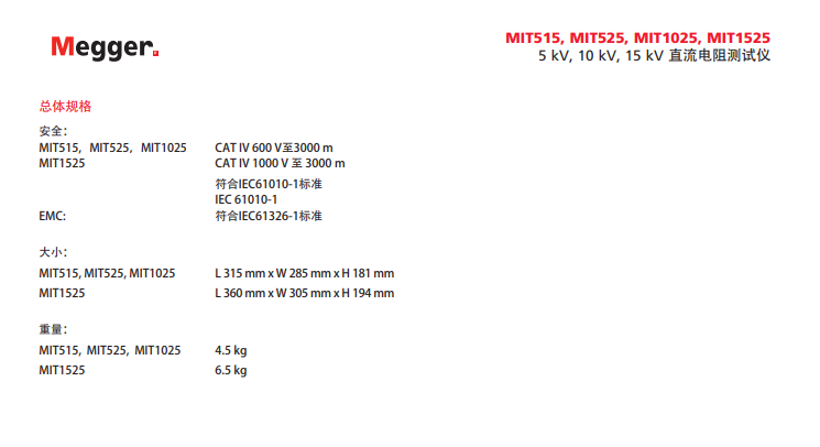 絕緣電阻測試儀MIT1025的技術(shù)參數(shù):