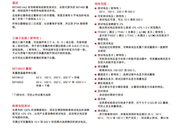 MIT480 mk2 系列絕緣和連續(xù)性測(cè)試儀,取代了上一代MIT480系列產(chǎn)品,專(zhuān)為電信和電纜測(cè)試市場(chǎng)設(shè)計(jì)。