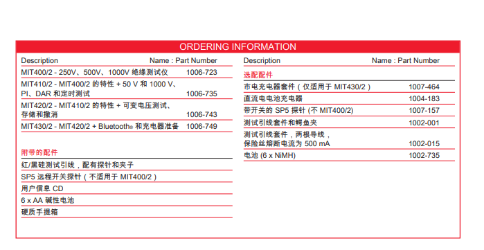 MIT420/2 還具有 25 V 和 50 V 電壓量程,適于測(cè)試用于信號(hào)控制通信電路:
